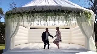 A wedding bounce house could be the perfect way to release emotions. Weddings can be a stressful time for all involved. You can use this bounce house or you can take advantage of the velcro interchangeable panels.